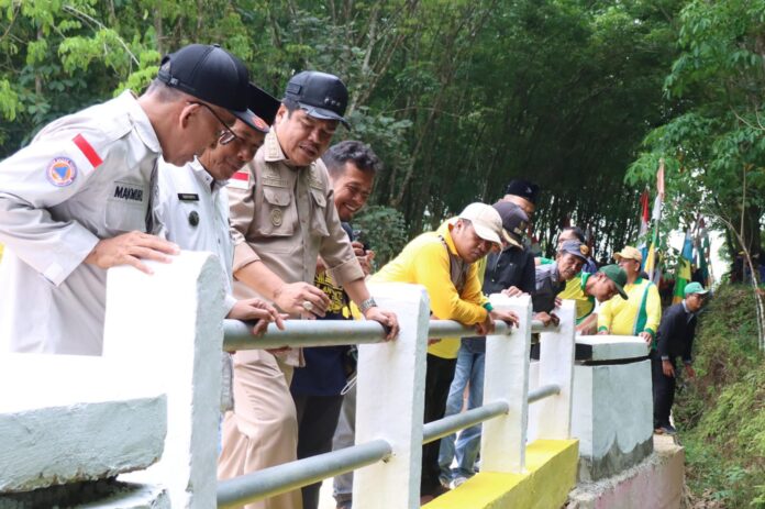 Pepadun.com, Lampung Tengah – Bupati Lampung Tengah Musa Ahmad menghadiri peresmian rehabilitasi dan rekonstruksi Ppembangunan jembatan pasca-bencana dengan panjang 6 meter dan lebar 5 meter di Kampung Varia Agung Mataram, Kecamatan Seputih Mataram, Kamis, 12/9/2024.