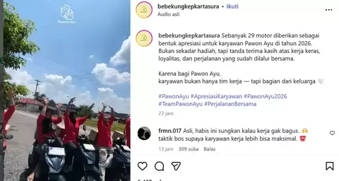 Hal itu dilakukan sebagai bentuk apresiasi atas dedikasi yang telah diberikan, sebanyak 29 unit sepeda motor dibagikan kepada para karyawan sebagai Tunjangan Hari Raya (THR) di tahun 2026 ini.